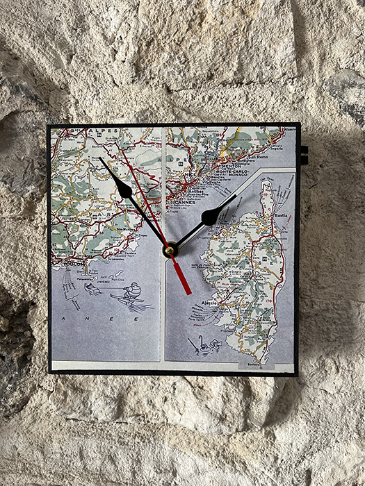 De la décoration remise au goût du jour. Des miroirs anciens repeints, des tissus anciens retravaillés en coussins, des pochettes réalisées à partir de tissus vintage décalés. Des sacs besaces, des grosses bananes entièrement ré inventés. Des coussins ronds des coussins carrés et même des coussins rectangles. Des lampes recyclées et transformées, réalisées à partir d’anciens globes chinés.
