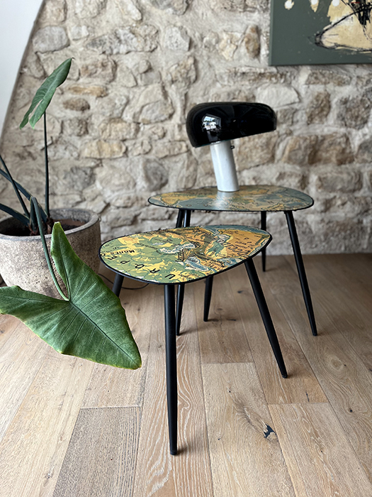 Du mobilier vintage à foison. Tout a été retravaillé avec amour par mes petites mains. Poncé, traité, repeint ou vernis, les meubles sont totalement restaurés. Des commodes, des armoires, des enfilades, des buffets Mado, des bonnetières, du mobilier scolaire, des buffets, des chaises, des tables, des chevets, des vitrines et bien plus encore selon les arrivages. N’hésitez pas à m’envoyer vos recherches.