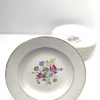 12 assiettescreuses de la faïencerie Digoin & Sarreguemines, France . Bon état général. Liseré doré et bord en relief. Véritable Opaque. Motif « Floralies » . Couleur blanche. Signées et numérotées au dos. Prix pour le lot.