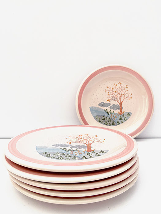 6 assiettes à dessert anciennes. Ainsi qu’un grand plat. Typique des années 80. Tonalités roses. Motifs arbres et chouettes. Signées au dos CI Made In Italy. Parfait état. Prix pour les 6 assiettes + le plat.