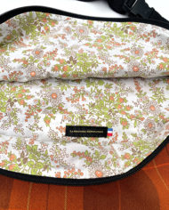 Comme toujours c’est une pièce unique avec un maximum de matériaux recyclés. Made in France, chaque pièce est réalisée à la main. Chaque tissus est chiné et sélectionné avec soin. Celle ci est à carreaux oranges tissus bien épais ( certainement un ancien rideau). Doublure tissu fleuri orangé vintage.