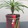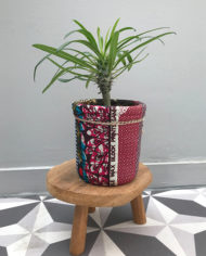 Bocal en verre « Le Parfait » ou autre ancien. Il a été séparé de son couvercle puis recouvert de tissus Wax disparate. Cerclé de ficelle armée sur la partie haute. Poinçon signature La Mauvaise Réputation. Plante grasse plantée et vendue avec. Ce bocal fait un porte plante/ Cache pot très original.