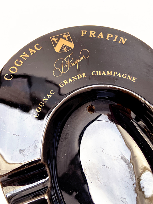 Ancien cendrier siglé Cognac frapin. Noir et doré. Quelques petits éclats sur le dessous. Made in France