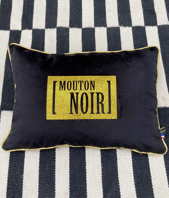 – Ce coussin à été floqué par notre Fée Floqueuse sur la face avant en OR pailleté [MOUTON NOIR] création Exclusive La Mauvaise Réputation