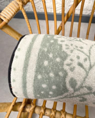 Coussin crée à partir de tissu ancien chiné. Il s’agit d’anciennes petites serviettes éponges achetées une à une au bon gré de la chine.