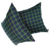 1 coussin en tissus imprimé tartan, tonalité vert foncé. Ce coussin est rempli de ouate haute qualité et n’est pas déhoussable. Tout est fait artisanalement et sur mesure. Il peut y avoir quelques irrégularités de dimensions ou de couture du à sa fabrication main, en France. Étiquette La Mauvaise Réputation. 2 coussins disponibles, prix pièce.