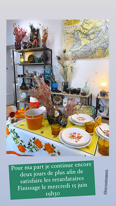 Je profiterai de cette occasion pour vous présenter tous les objets et la vaisselle décalées et colorées que je chine depuis plusieurs mois pour cette exposition.