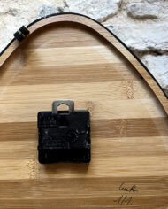 Horloge murale en bois naturel massif. Recouvert au recto avec une partie de carte scolaire ancienne originale. Chaque carte est chinée et de ce fait comporte quelques défauts et des petites taches dues à son âge. C’est bien l’original de la carte qui a été fixée sur le support. Celle ci est collée à la main et est UNIQUE. Elle est ensuite vernis plusieurs fois. Et enfin cerclé de percale de coton noir. Le mécanisme horloger à été monté par le bijoutier horloger « Bijouterie Choiseul Paris » et est allemand.