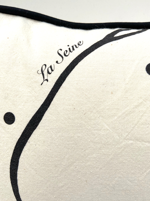 Housse de coussin crée à partir d’un tissus ancien couleur crème que j’ai chiné. J’ai ensuite ensuite dessiné le motif et je l’ai fait sérigraphier en France. Tout l’assemblage est fait à la main par notre Fée Couturière Catherine, en France aussi bien-sur. Passe Poil noir. Fermeture éclair en métal. Vendu avec l’intérieur du coussin . Chaque pièce est cousue avec Amour. Sur ce second modèle nous avons ajouté une petite Tour Eiffel en métal.