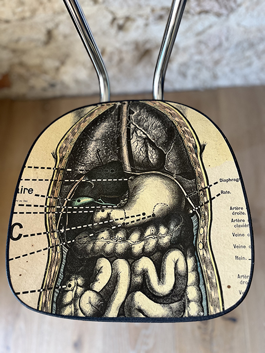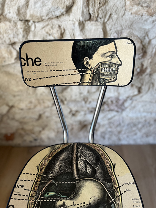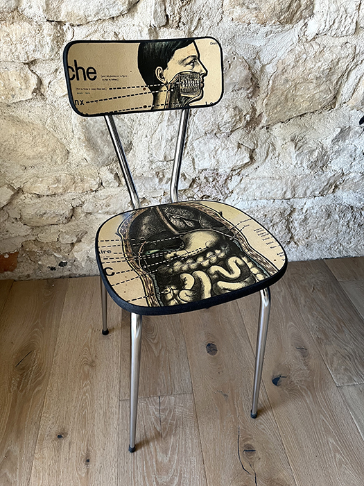 Chaise Collection « VOUS ÊTES ICI ». Ancienne chaise entièrement retravaillée.