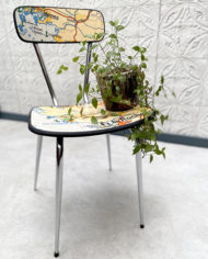 Chaise Collection “VOUS ÊTES ICI”. Ancienne chaise entièrement retravaillée.