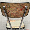 L’assise et le dossier ont été recouverts avec une VÉRITABLE carte scolaire vintage originale. Chaque carte est chinée et est ancienne. De ce fait elle comporte quelques défauts (pliures, manque, petites taches…) dus à son âge. C’est bien l’original de la carte qui a été fixé sur la chaise. Celle ci est recouverte à la main et est UNIQUE. L’assise et le dossier ont ensuite été vernis puis cerclés de percale de coton noir mat. Cette chaise est lessivable. Elle reste cependant un objet artisanal à traiter avec soin.