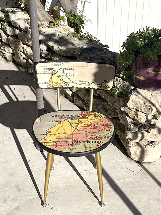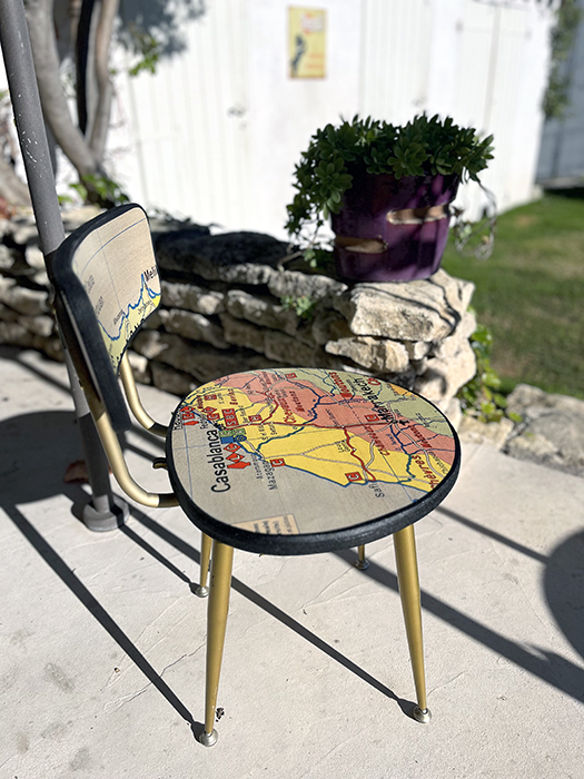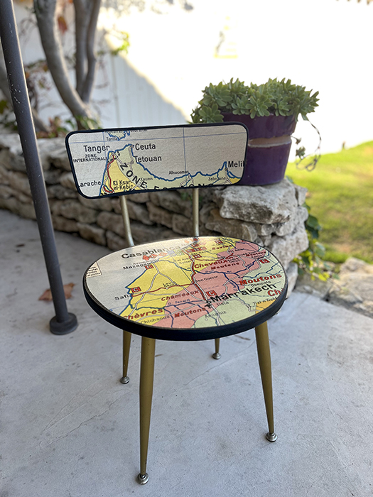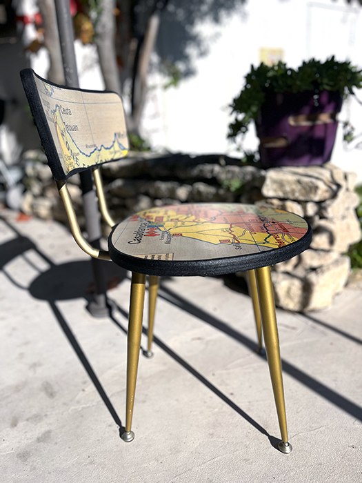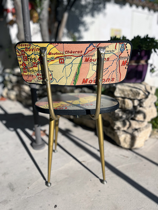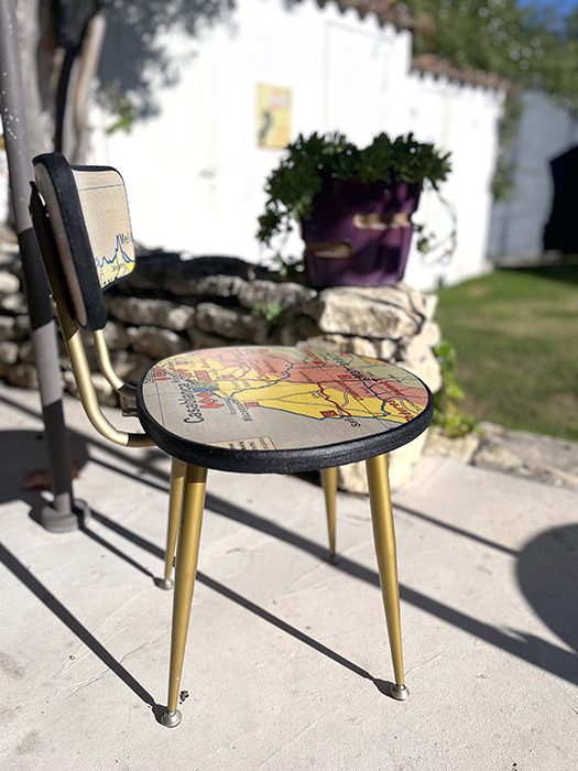 Chaise Collection « VOUS ÊTES ICI ». Ancienne chaise PELFRAN entièrement retravaillée.