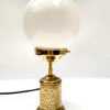 Cette bizarrerie est fabriquée à partir d’un ancien pied de lampe à huile Abeille que j’ai chiné. Il a été nettoyé. Nous avons changé le système de fixation du globe et la douille ainsi que le fil. Attention ce ne sont pas les normes validées. Nous avons remplacé l’abat jour par un globe en verre boule ancien. Elle fonctionne parfaitement. Au niveau de la anse j’ai ajouté une pampille Champignon en verre. Pièce unique évidement !