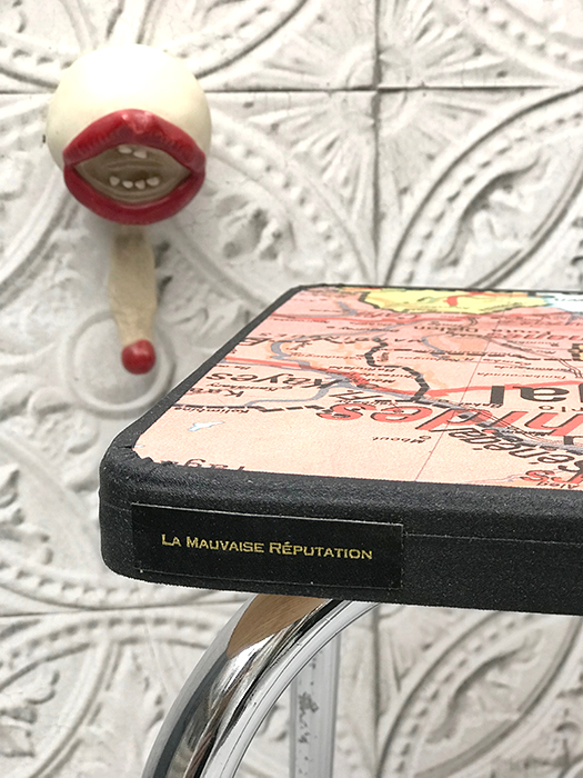 Tabouret « VOUS ÊTES ICI ». Ancien tabouret entièrement retravaillé.