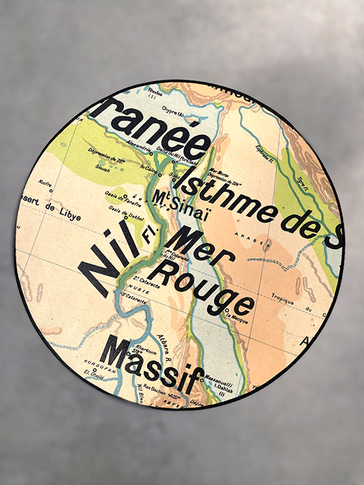 L’assise a été recouverte avec une carte scolaire vintage originale. Chaque carte est chinée et est ancienne. De ce fait elle comporte quelques défauts et des petites taches du à son âge. C’est bien l’original de la carte qui a été fixé sur la chaise. Celui ci est recouverte à la main et est UNIQUE. L’assise a ensuite été cerclée de percale de coton noir mat. Ce tabouret est donc lavable. Il reste cependant une pièce artisanale à manipuler avec soin.