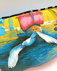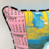 Mini coussin crée à partir d’un calendrier en tissu à motif de fleurs. J’adore ces anciens calendriers publicitaires, ultra kitsch et graphique à la fois. Cela fait plusieurs années déjà que je les réinvente en coussin. Rembourrage ouate anti acarien. Année 1990. Nous l’avons « plié »en deux afin de créer un modèle plus petit. Visuel au verso, calendrier au recto. Passe poil réalisé sur mesure avec un tissu ancien.