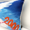 Mini coussin crée à partir d’un calendrier en tissu à motif de fleurs. J’adore ces anciens calendriers publicitaires, ultra kitsch et graphique à la fois. Cela fait plusieurs années déjà que je les réinvente en coussin. Rembourrage ouate anti acarien. Année 2000. Nous l’avons « plié » en deux afin de créer un modèle plus petit. Visuel au verso, calendrier au recto. Passe poil réalisé sur mesure avec un tissu ancien.