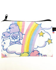 L’extérieur de celle ci est cousu avec un tissu vintage représentant Bisounours©. Et l’intérieur est doublé d’un tissu vintage fleuri.