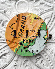 Porte Clés Mural en bois naturel de pin. Recouvert au recto avec une partie de carte scolaire ancienne originale.  Chaque carte est chinée et de ce fait comporte quelques défauts et des petites taches dues à son âge. C’est bien l’original de la carte qui a été fixée sur le support. Celle ci est collée à la main et est UNIQUE. Elle est ensuite vernis plusieurs fois. Le contour du disque de pin est poncé pour une jolie finition. 3 accroches en métal noir. Idéal pour accrocher les trousseaux de clés dans l’entrée, les colliers, les câbles du téléphone, les petits torchons et bien d’autres utilisations.