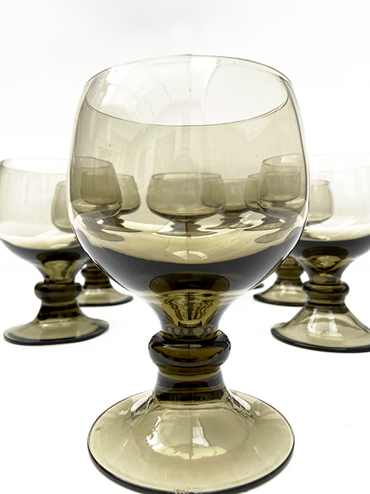 7 magnifiques coupes à glace ( ou très grand verre pour les gourmands 😉 ) en verre de couleur gris fumé. Très bon état. Prix pour les 7.