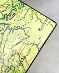 Le plateau de cette petite table à été recouvert avec une carte scolaire vintage originale. Chaque carte est chinée et est ancienne. De ce fait elle comporte quelques défauts et des petites taches du à son âge. C’est bien l’original de la carte qui a été fixé sur la table. Celle ci est recouverte à la main et est UNIQUE.