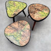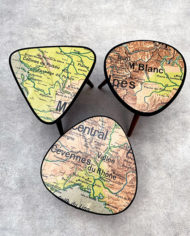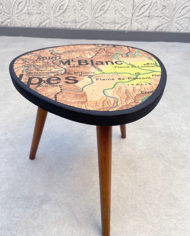 Le plateau de ce petit porte plante à été recouvert avec une carte scolaire vintage originale. Chaque carte est chinée et est ancienne. De ce fait elle comporte quelques défauts et des petites taches du à son âge. C’est bien l’original de la carte qui a été fixé sur la table. Celle ci est recouverte à la main et est UNIQUE.