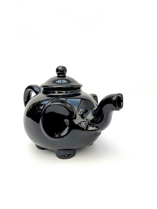 Petite théière noire en forme d’éléphant. Très bon état à part un petit manque d’émail sous la anse ( photo). Intérieur noir.