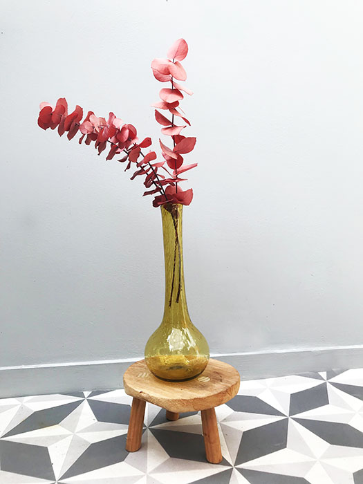 Joli vase ancien en verre façon bulle. Couleur jaune ambré. Bon état général. Signé dessous par la Verrerie Biot en Provence. 1 fleur ou petit bouquet.