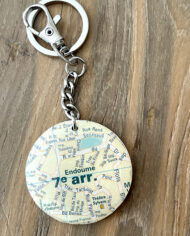 Chaque Porte-clés C-ICI est réalisé à partir d’une ancienne carte vintage originale (scolaire ou routière).